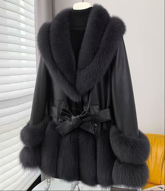 Geaca PU Vira cu Blana Autentica de Vulpe